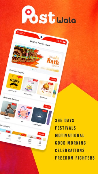 PostWala Festival Post & Video es una aplicación para Android diseñada para la creación de banners y posters personalizados. Ofrece una variedad de funciones, incluyendo plantillas listas para usar que se adaptan a diversas categorías de negocio y festividades. Esto permite a los usuarios conectar con sus clientes mediante publicaciones específicas para eventos y promociones. La facilidad de uso de la aplicación facilita la creación de contenido atractivo para redes sociales y otros canales digitales.